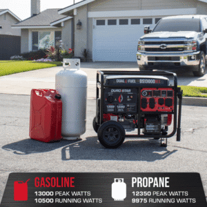 Switch between gasoline and propane based on availability, performance, or environmental considerations, ensuring you always have the power you need.