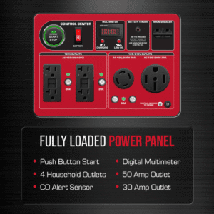 Provides high-capacity power through a 50 Amp outlet, ideal for running heavy-duty equipment and large appliances, ensuring comprehensive coverage for your backup needs.