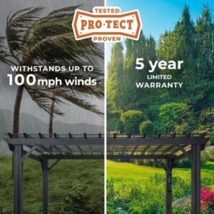 Steel construction ensures superior strength and durability compared to wood or composite pergolas.