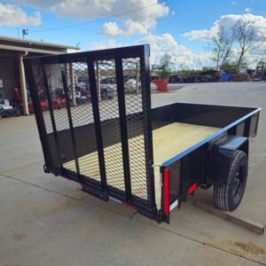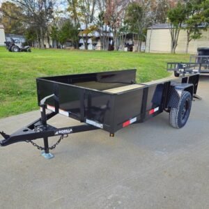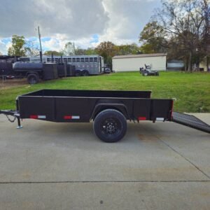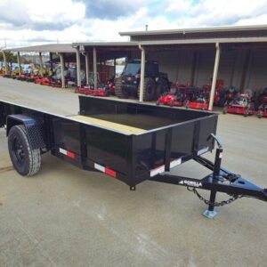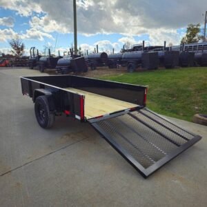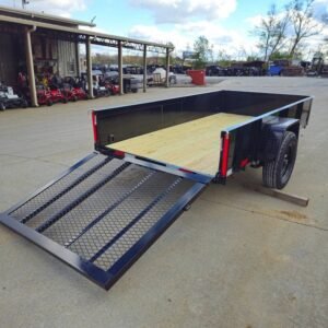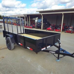 This 5′ x 10′ Utility Trailer is a versatile and durable solution for hauling equipment, tools, and materials. Built with a straight deck and 18-inch steel sides, it offers excellent load stability and protection during transport. The tall rear gate doubles as a loading ramp, allowing for easy loading of mowers, ATVs, and other heavy equipment.