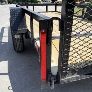 • Reinforced loading gate: The gate on the trailer is reinforced with 5 supports in addition to the outside 2 supports. This is more than most trailer manufacturers will add and it ensures the gate will not bend over time from daily loading. The gate also will fold inside the trailer so that you can full length of trailer or for transport purposes.