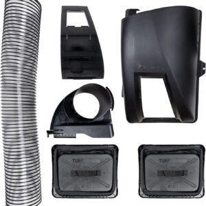 Exclusive quick-connect hose adaptor making it easy to remove any clogged chute and hose. Simple wing nut and hook attachment to mower deck for quick and tool less installation and cleaning.