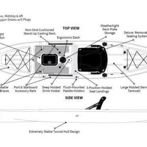 Designed with serious anglers in mind, it includes rod holders, bungee storage, and molded-in gear tracks so you can fully customize your setup. The rotomolded, high-density polyethylene construction provides long-lasting durability and resistance to impact, while the flat standing platform allows stable standing for casting and sight-fishing.