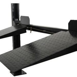 APlusLift HW-8SXLT 4-post car auto lift truck hoist package includes a caster kit with polyurethane wheels, a jack tray, three drip trays, two approach ramps, and a powercord. The caster kit allows customers to move the lift around the garage easily and can be installed or removed in minutes. The jack tray allows customers to use a jack to lift one end of the vehicle. The drip trays prevent fluid from the top vehicle from dripping onto the bottom vehicle. Optional sliding jacks are available for purchase.