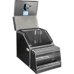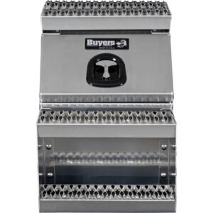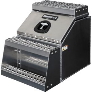 The design is heavy duty but light weight, making the boxes extremely durable without adding a lot of weight to your tractor trailer. The hinge and hardware are constructed of corrosion-resistant stainless steel. An automotive bulb seal and locking, polished stainless steel T-handle latch keep your tools protected from theft. Replaceable grip strut steps provide superior traction in inclement weather and can be swapped out as they wear down.Ultra-wide opening lid makes it easy to store and access equipment on your semi truck.Universal design fits Peterbilt®, Kenworth®, International®, Freightliner®, Western-Star®, Volvo®, and Mack® trucks.Extremely durable 0.125 in thick aluminum construction.Corrosion-resistant stainless steel hinge with heavy duty hinge and stainless steel hardware.Replaceable grip strut steps provide superior traction and can easily swap out as they wear down.Locking, polished stainless steel T-handle latch keeps your tools protected from theft.Automotive bulb seal keeps water and dirt out of your box.Easy to install on your tractor trailer frame rail, For boxes wider than 18 inches, Buyers recommends using 1701015 Steel Mounting Brackets to prevent stress cracksMade in the USA.CA Residents: Prop 65 Warning(s)