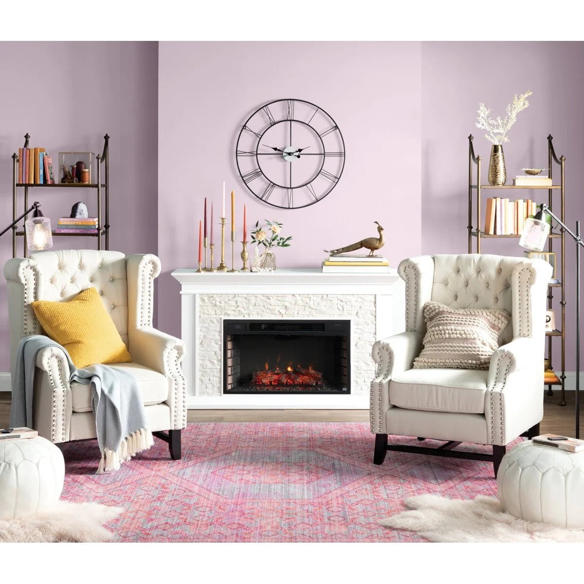 - Add comfort and cozy to your home with this white electric fireplace with elegant faux stacked stone detail