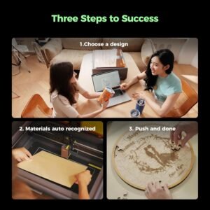- SMART & SIMPLE TO USE – No more complicated setups! The built-in camera automatically recognizes your material and applies the best settings for engraving or cutting—so you don’t have to experiment. Just place your material, let the Falcon A1 do the work, and enjoy perfect results every time. For added safety and peace of mind, the Falcon laser engraver includes an emergency stop button and will automatically pause when the lid is opened, making it safe for beginners and experienced users alike