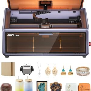- DESIGNED FOR CONVENIENCE – The Falcon A1 laser cutter and engraver machine unique double-door design gives you easy access to your projects. The transparent top and side panels let you monitor your work in real time, and the side openings make loading and unloading materials effortless. Whether you’re a hobbyist or a professional, this design makes engraving faster, easier, and more enjoyable