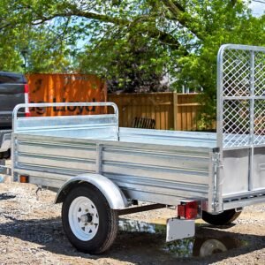 Constructed with fully-welded heavy-duty hot-dipped galvanized tubular steel with a bed size of 4 1/2 ft x 7 1/2 ft that holds up to 1,639 pounds