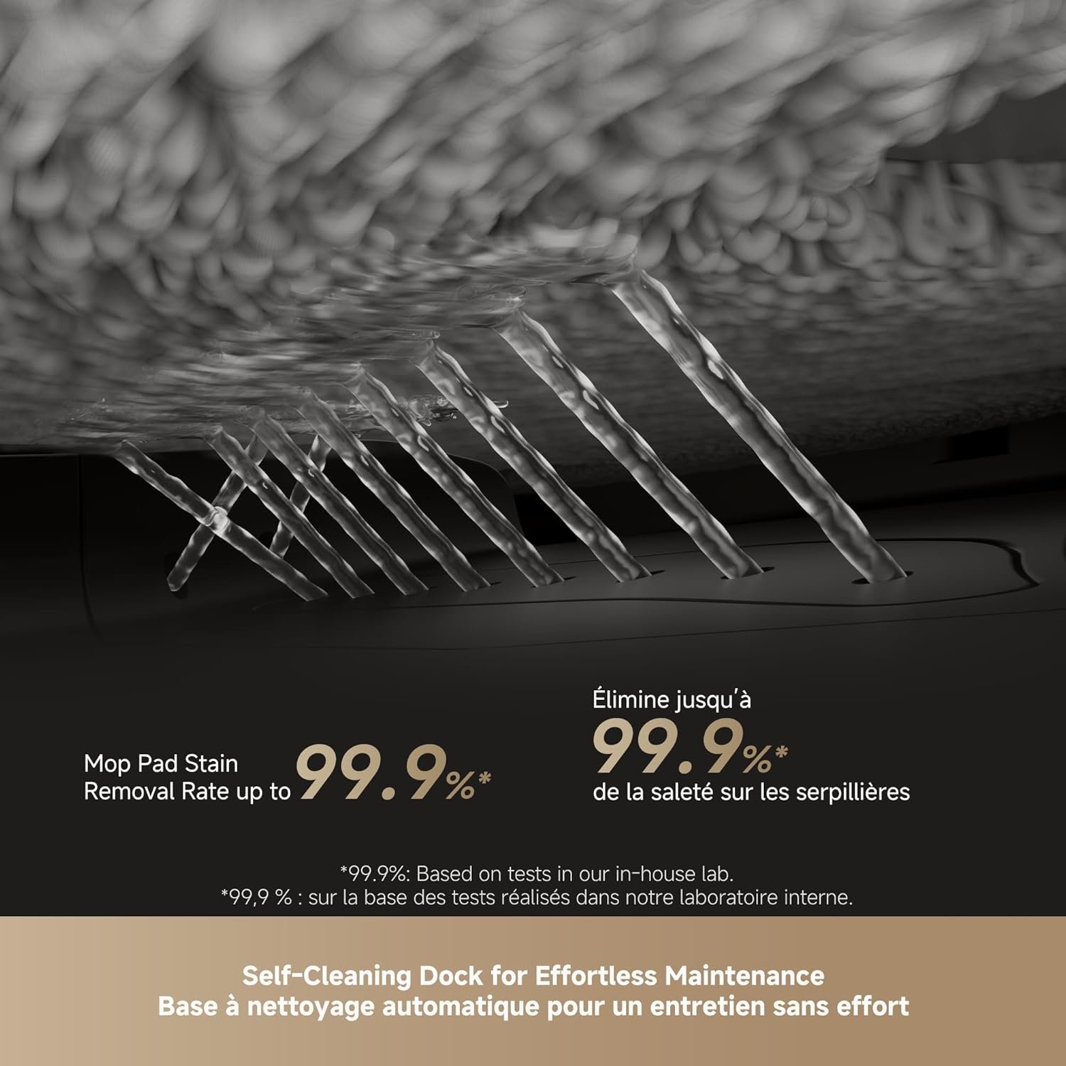 All-in-One PowerDock Convenience: Benefit from the dock’s effortless maintenance. Skip manual dust bin emptying for up to 100 days, rinsing mop pads with hot water from all the dirt, or drying them. L50 Ultra also refills solution and water for mopping and auto-washes its board, creating a hands-free post-cleaning routine.