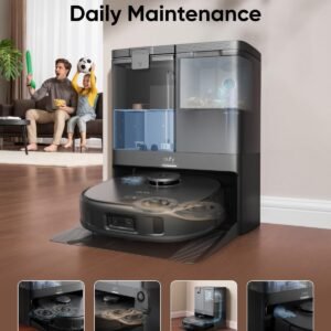 • All‑in‑One station: auto‑empty, auto‑wash, auto‑dry, auto‑refill.