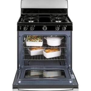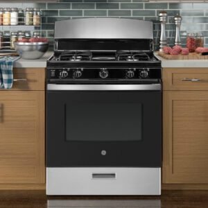 The GE 30″ Free-Standing Gas Range (Model JGBS30RETSS) delivers reliable cooking performance with a sleek stainless steel design that fits seamlessly into any kitchen. With four powerful sealed burners and a spacious 4.8 cu. ft. oven, this range makes it easy to prepare everyday meals or holiday feasts. The removable grates and lift-up cooktop simplify cleaning, while the broiler drawer gives you added flexibility for crisping and browning. Built for durability and convenience, this GE gas range is a dependable choice for families who want performance at an affordable price.