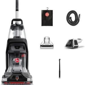 The Hoover PowerScrub Deluxe Carpet Cleaner powerfully tackles deep, set-in stains and renews your carpets for a complete, whole home clean. Five counter-rotating SpinScrub brushes scrub at multiple angles to loosen, lift and remove the toughest stains. Combined with HeatForce faster drying technology, this carpet cleaner will renew your carpets from the inside out. Separate clean and dirty water tanks make it easy to fill, empty and rinse. Plus, Hoover PowerScrub Deluxe Carpet Cleaner Machines come with versatile tools to target stubborn messes beyond your carpets and a sample carpet cleaning solution for superior stain removal. For more than 100 years, Hoover has designed powerful, easy-to-use products that clean your entire home from floor to ceiling. Since 1908, consumers and businesses have trusted Hoover to provide reliable, innovative cleaning solutions. Today, we offer a comprehensive line of products for general and special-purpose vacuuming, including full-size uprights and canisters, deep cleaners and hard floor cleaners.