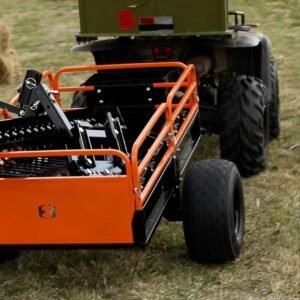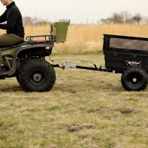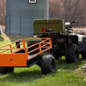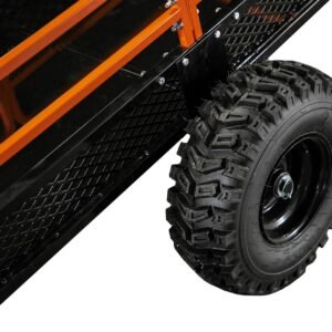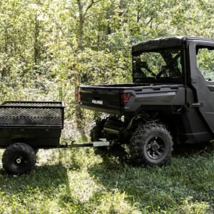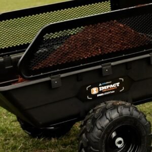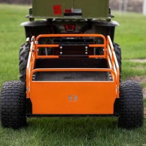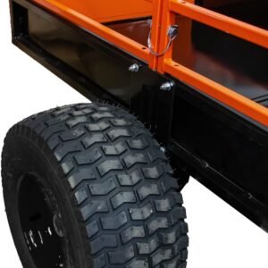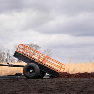 With its 1,500-lb load capacity, the trailer easily handles firewood, soil, gravel, tools, fencing supplies, and large debris. The pivoting dump feature allows operators to unload precisely where needed, minimizing manual material handling. A wide-track stance and rugged tires ensure stability, whether traveling over grass, wooded trails, or uneven terrain.