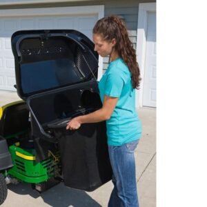 The system installs quickly thanks to John Deere’s streamlined attachment design. A high-airflow chute provides smooth grass movement and reduces clogging, even in challenging mowing conditions. The easy-empty twin bags detach effortlessly so you can spend less time dumping and more time finishing the job.