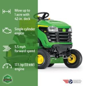 The John Deere S100 riding lawn mower is a testament to John Deere’s commitment to quality, innovation, and reliability. From its powerful 17.5-hp engine and precise hydrostatic transmission to its comfortable operator station and robust build, the S100 is designed to make lawn care easier and more enjoyable. Whether you’re tackling large lawns, managing intricate landscaping, or even preparing for seasonal snow removal, this lawn tractor is engineered to meet your needs with efficiency and style.