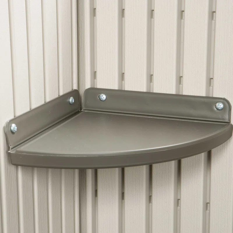 Product Specifications:Delivery Type: Curbside DeliveryEstimated Delivery: 14-21 Business DaysItem Type: ShedsMaterial: ResinModel Number: 60079Product Type: Dual Entry Shedupc: 81483835563Warranty: 10-Year Limited WarrantyWidth: 15’Depth: 8’Construction: Reinforced SteelDoor Style: 2 Double DoorsHeight: 8’Includes: Shed, AccessoriesFrame Type: Reinforced SteelSize: 120 Sq. Ft.Color: Desert SandRust-Resistant: YesWater-Resistant: YesFade-Resistant: YesFire-Retardant: YesMildew/Mold-Resistant: YesUV-Resistant: YesPeak Height: 96″Roof Vent: 2 Screened VentsAssembly Required: YesTools Required (Included or Not): 7/16″ and 3/8″ Wrenches, Mallet, Utility Knife, Phillips and Flat Head Screwdriver, Needle Nose Pliers, Hammer, Safety Goggles, Ladder and Drill with 5/16″ Wood and Masonry Drill Bits (Not Included)Weight: 550 lbs.