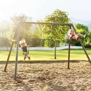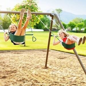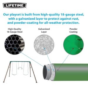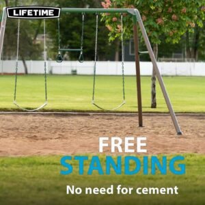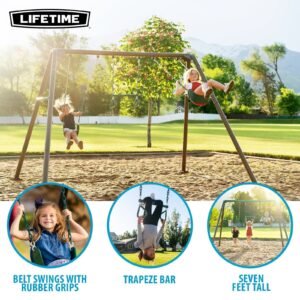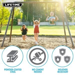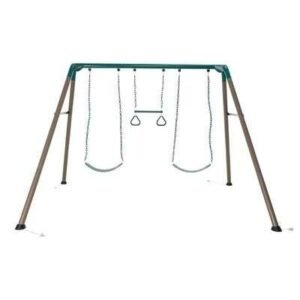 Kids around the world have enjoyed active, enriching fun on swing sets for generations. As a staple of home and playground play, swing sets allow kids to experience the joy of outdoor fun. You can give your children a safe, exciting, and low-maintenance play system with the Lifetime Kid’s Swing Set. Your children and their friends will fly through the air with the birds, twist on the trapeze like acrobats, and go on as many adventures as their minds can create. High-quality materials and trusted design principles make this swing set one you can trust to provide a premium play experience for your children. It passes all playground performance and safety standards, and is made with no lead-based materials. Hard corners and edges are rounded off or capped with smooth plastic caps, and the swing chains are coated with soft rubber grips to prevent pinching. The sturdy steel construction is strong, stable, and UV resistant, so it will retain its integrity and color. With a trapeze bar and two swings, all the kids can get in on the fun, and explore new ways to play. Parents can worry less about maintenance with steel and high-density polyethylene components that are built to last and require no staining or painting. For a great time swinging and playing outside, the Lifetime Metal Swing Set has the features you and your children need.