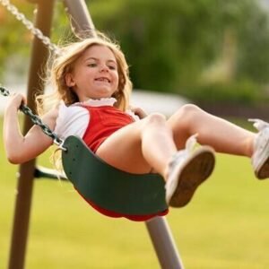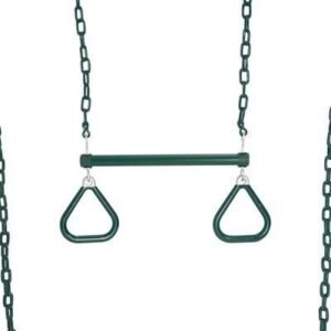 Three-Station Swing Set – Two (2) heavy-duty molded swings, one (1) rubberized steel trapeze bar, providing multiple ways to play.