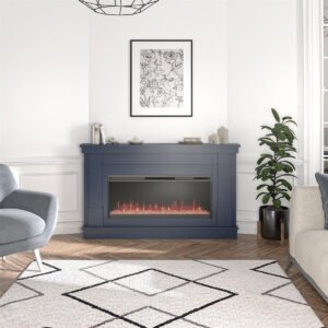 Instantly give your living room a modern cozy upgrade with the Novogratz Waverly Wide Mantel with Linear Electric Fireplace. The Waverly features a linear insert with a contemporary color-changing crystal ember bed. The wide mantel offers plenty of space for décor and family photos. Constructed from painted engineered wood, the Waverly comes in several beautiful and bold finishes to complement any décor. Control the fireplace heater flame setting with the remote control (with included AAA batteries) or by the touch panel and choose to enjoy your freestanding fireplace with or without the heat setting while still allowing the flames to give off their calming feel. This fireplace insert is powerful enough to heat a room up to 400 square feet and features, auto shut off, timer, and adjustable flame and heat control to keep your room at the perfect temperature. Keep your family safe with the cool-touch front, perfect for kids and pets. Assembly is a breeze with clearly labeled parts, and our support team is ready to help with any questions. Plus, replacement inserts ensure your fireplace stays stunning for years. The Mantel with Linear Electric Fireplace ships flat to your door and requires assembly by two adults. Assembled dimensions: 37.76″ H x 64″ W x 10.9″ D.