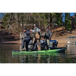 Built for versatility, this kayak supports electric motors up to 5 HP or 100 lb thrust, making it ideal for long fishing trips, hunting expeditions, or exploring larger waterways. The large open deck design allows easy rigging of electronics, rod holders, and accessories, while the high-capacity hull ensures smooth performance even with a full load.