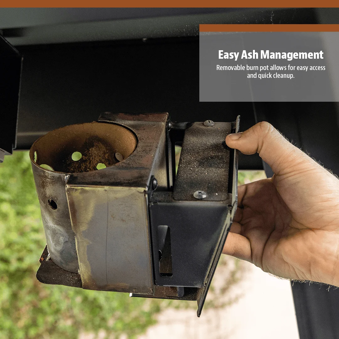 - The undermount, removable burn pot allows for easy access and quick clean up