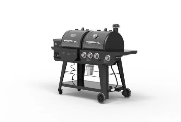 Its innovative Flame Broiler Lever™ lets you switch from indirect to direct heat for true open-flame searing, giving your food that signature smoky flavor. With its sturdy side shelves, tool hooks, and bottom storage cabinet, you’ll have all the space you need for prep and storage. The heavy-duty locking caster wheels make it easy to move the grill around your patio or backyard.