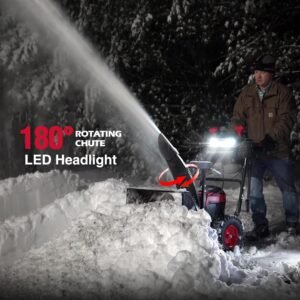 Built for durability and convenience, this model includes LED headlights for better visibility in low-light conditions and a 180° adjustable chute to control snow direction. Perfect for homeowners who want the power of gas without the noise, emissions, or maintenance.