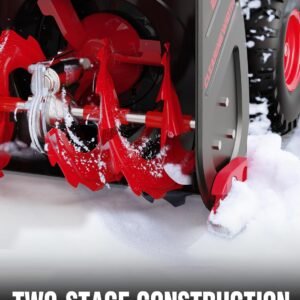 The 24-inch clearing width and 20-inch intake height allow you to remove large amounts of snow quickly, while the self-propelled drive system makes it easy to maneuver on driveways, sidewalks, and uneven terrain. Its two-stage steel auger and impeller break down compacted snow and throw it up to 40 feet away for efficient clearing.