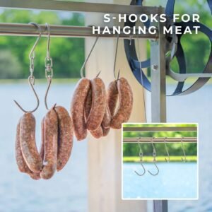• Versatile S-Hooks: 4 stainless steel hooks for Gaucho-style vertical grilling, perfect for slow cooking and smoking multiple cuts of meat simultaneously