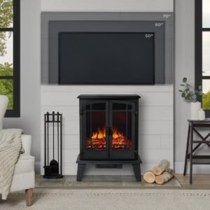 Enjoy all the warmth and comfort of a traditional fire with this free-standing electric fireplace. The Foster, designed to look like a built-in wood stove offers a flame effect that looks like a real fireplace, multiple heat settings, and a stove pipe. The compact footprint makes it perfect for any living space.