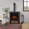 Perfectly suited for many environments, the Hollis Electric Fireplace is designed to replicate the look of a built-in wood stove. A compact footprint allows practically endless placement options, even in small spaces. Complete the look by attaching the included stove pipe and using the storage compartment to display split logs. The VividFlame Electric firebox plugs into any standards outlet and includes features such as a programmable thermostat to provide precise heating with 6 preset temperature settings in Celsius or Fahrenheit, timed shut off, dynamic embers, capacitive touch controls and multiple flame color options. Available in matte black and matte white.