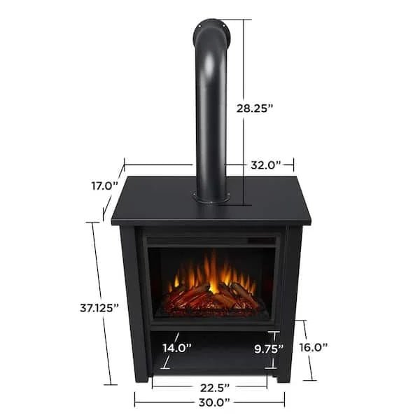 - Includes powder-coated steel mantel, faux stove pipe, 40 screws, 4 rubber plugs and electric firebox with remote control