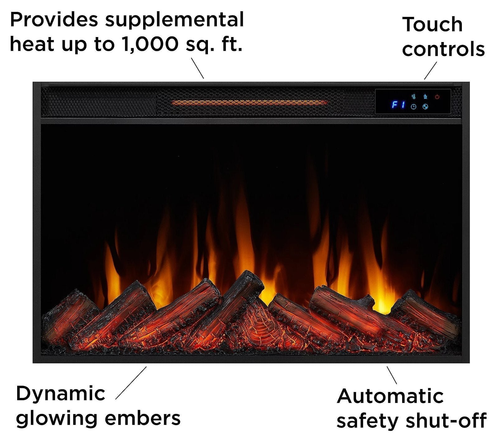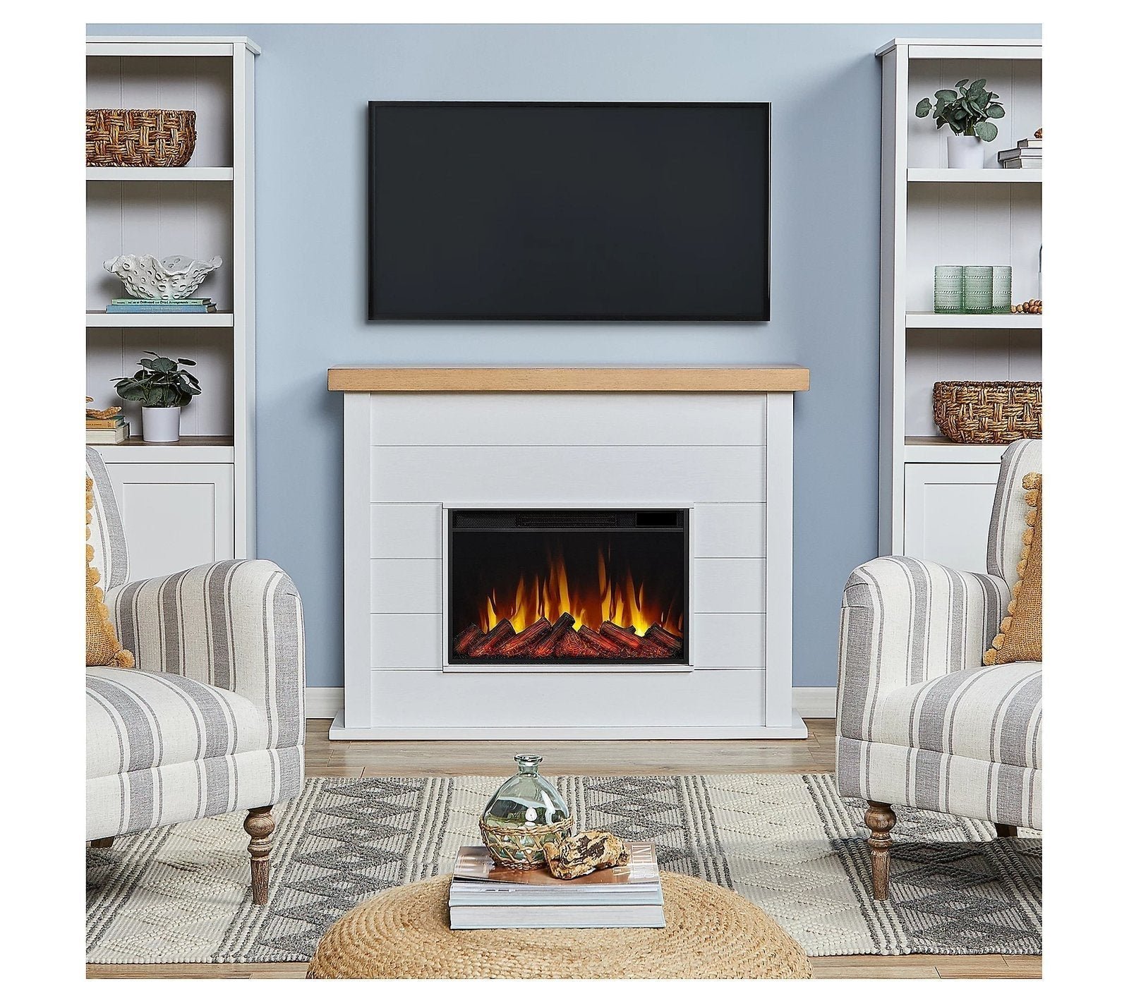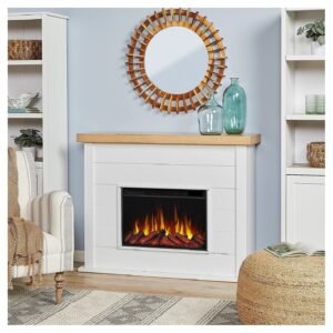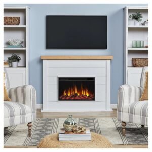 Includes 13056E mantel, electric firebox, remote control with battery, 6′ power cord with lay-flat plug, anti-topple safety device and hardware