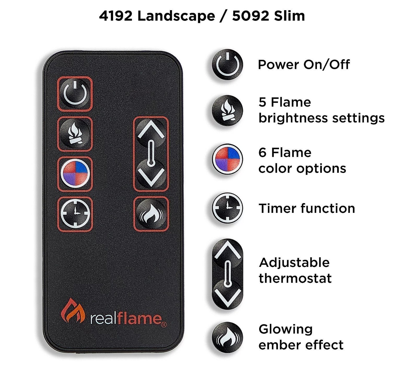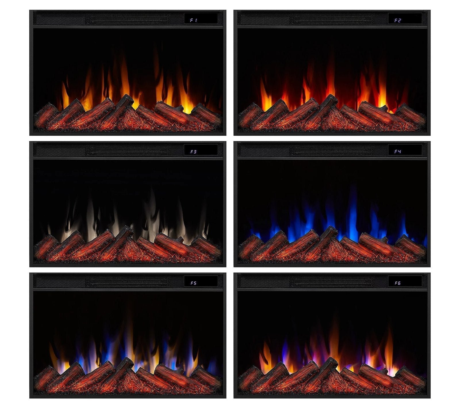 Six flame colors; five flame brightness levels
