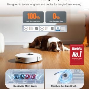 - Unrivaled Zero-Tangling Prowess: No more worries about hair tangling. Engineered with cutting-edge technology, DuoDivide Main Brush and FlexiArm Arc Side Brush handle hairs effortlessly and effectively, eliminating hair-wrapped troubles.