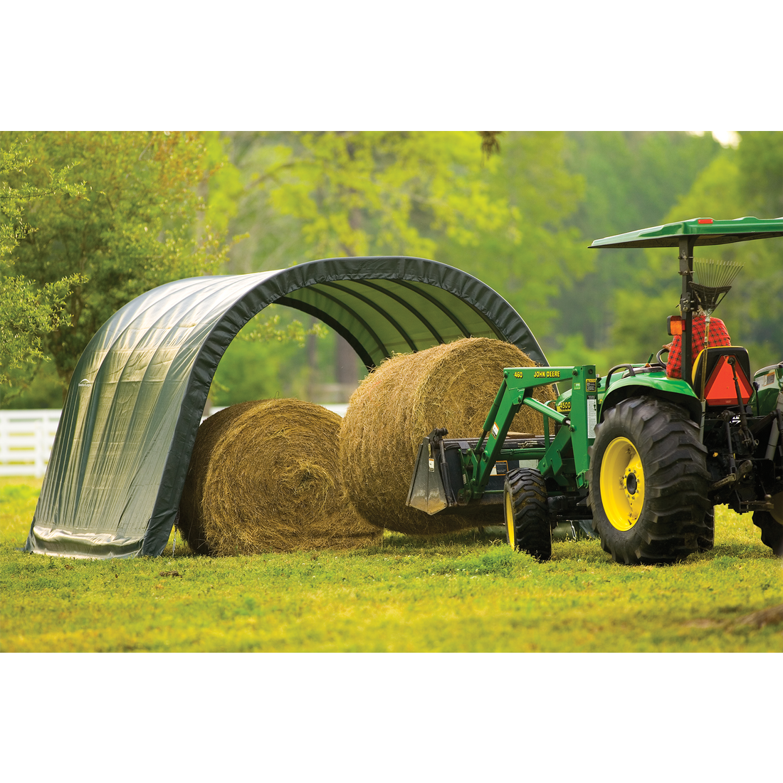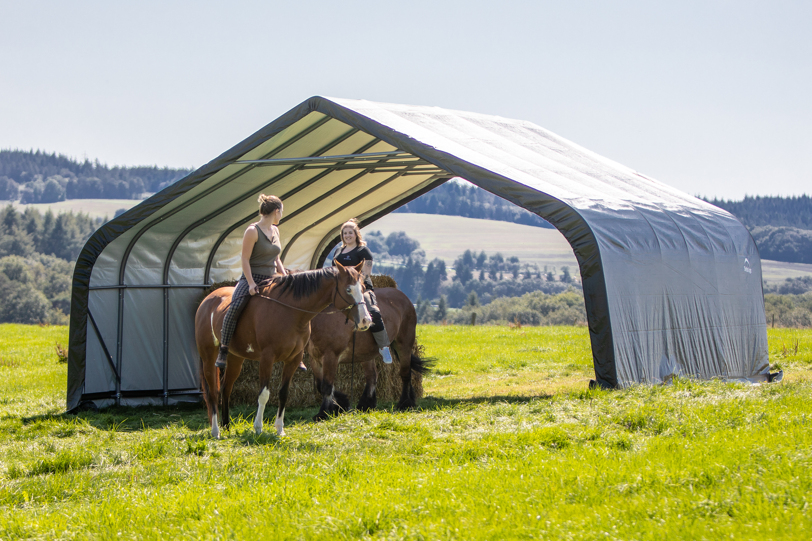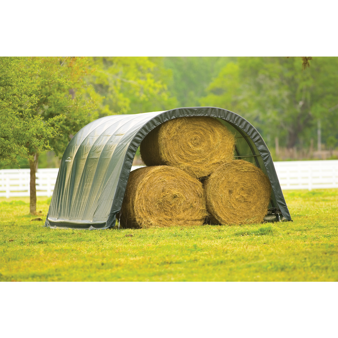 Contact UsCustomer ServiceMy AccountShipping and ReturnsTrack OrdersParts RequestSAGE / PPAI InquiriesProduct RecallWarranty ClaimProduct Registration | Specifically designed for equine and livestock, the equine run-In-shed is constructed using high grade heat treated steel that goes through a proprietary 13-step Rhino Shield steel surface preparation process | Professional grade 1-5/8 in. / 4,1 cm all steel frame, bonded with thermoset baked on powder-coated finish prevents chipping, peeling, rust and corrosion | Advanced engineered, 3-layer, polyethylene, ripstop fabric cover with hot air fused seams that are 100% waterproof, UV-treated inside and out with added fade blockers, anti-aging, antifungal agents, high profile white interior lining provides enhanced illumination | Slip fit connectors and swedged tubing make for easy assembly, bolt hardware at every connection ensures a solid structure | Ratchet Tite tensioning enables quick cover installation, Easy Slide Cross Rail system locks down and squares up frames