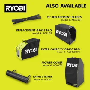 • (1) RY401012 – 40V HP BRUSHLESS 21″ SELF-PROPELLED AWD MULTI-BLADE MOWER