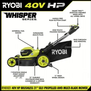 RY401012 – 40V HP BRUSHLESS 21″ SELF-PROPELLED AWD MULTI-BLADE MOWER