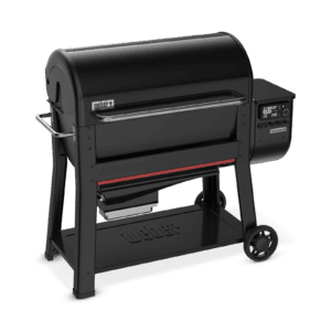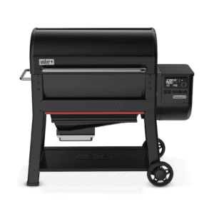 Smoke, sear, roast, and more on the Searwood® XL 600 pellet grill featuring a full temperature range from 180° to 600°F and DirectFlame™ cooking that creates bold flavorful sear marks and delicious golden browning. The Searwood® XL 600 pellet grill heats up in 15 minutes or less†, cooks evenly and features a full grate sear zone that lets you get more food on the flame. Cook confidently with intuitive digital controls at the grill and Wi-Fi® and Bluetooth® connectivity that lets you monitor and control the grill remotely, see live graphs of your cook, get readiness alerts, recipes, and more from the Weber Connect™ app on your smart phone. The built-in fuel gauge shows the current pellet level and sends you notifications when the pellet level is low. Explore new techniques with a rotisserie or griddle insert (each sold separately). Then clean up quickly and easily with the pull and clean grease and ash management system located at the front of the grill.