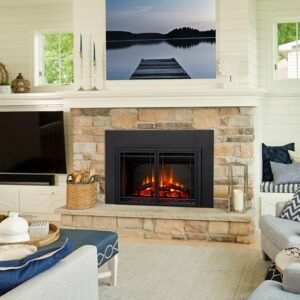 he SimpliFire 30-In Electric Fireplace Insert brings warmth, ambiance, and convenience to your home with the beauty of a real fire — without the mess or maintenance. Designed for easy installation into an existing fireplace or custom-built surround, this insert features vivid LED flame technology and an adjustable multi-color ember bed, allowing you to create the perfect mood for any room.