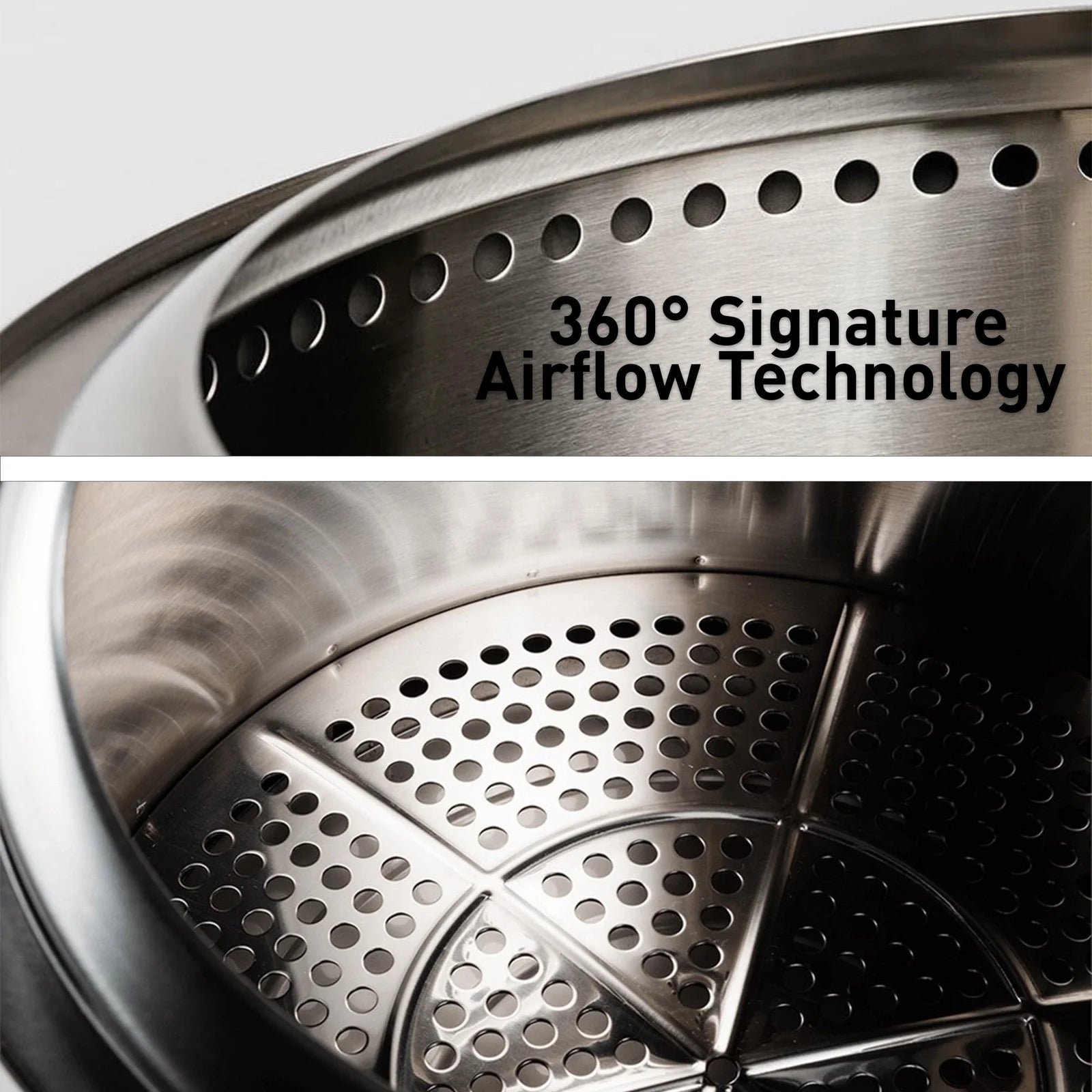 • LONG LASTING & REMOVABLE ASH PAN: 304 stainless steel is highly durable, surprisingly lightweight, and won’t cave under the pressure of an ultra-hot flame. Our new, removable ash pan rests under the base plate, catching all the fine ash in one place. For clean up just lift the base plate to remove the ash pan, clean out its contents, and that’s it!