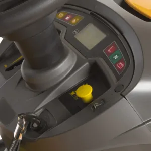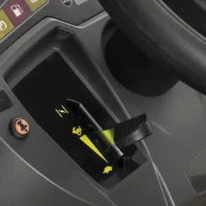 Less operator fatigue because of ride‑on format, ergonomic layout and hydrostatic drive.