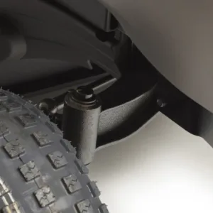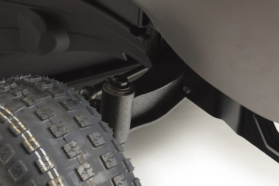 Large rear wheels (20″ in some specs) plus cast‑iron front axle for traction, stability and durability.