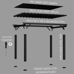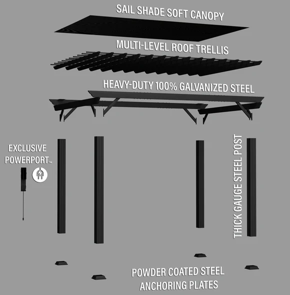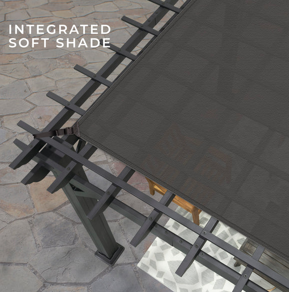The included soft sail canopy offers shade from the sun while maintaining airflow, allowing you to enjoy your outdoor space comfortably even during the hottest days. Perfect for homeowners seeking a stylish retreat, this pergola creates a versatile outdoor environment suitable for entertaining, dining, relaxation, or simply enhancing the beauty of your outdoor space.