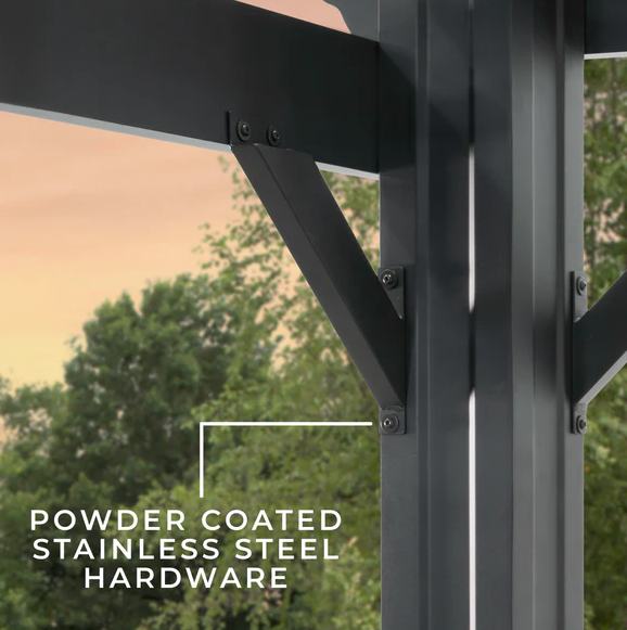 • Powder-coated steel frame protects against rust, fading, and environmental damage.