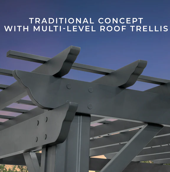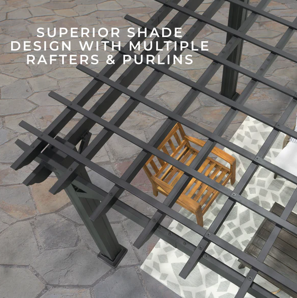 • Classic pergola design with clean, timeless lines that suit a variety of outdoor decors.