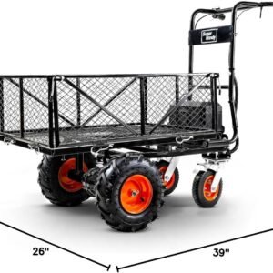 The SuperHandy 48V Electric Utility Cart is a heavy-duty powered wheelbarrow designed for efficient hauling in farm, garden, and property maintenance environments. It features a 48V brushless electric motor that delivers strong torque and smooth operation without emissions or engine noise, making it an eco-friendly alternative to gas-powered units.