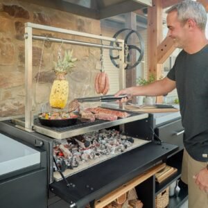 - Santa Maria Precision: 304 stainless steel grill grates adjust from 2” to 24” in height, giving you precise control for searing or slow roasting meats to perfection over wood fire or charcoal