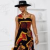 Tiye African Print Off Shoulder Dress [Pink N Green]